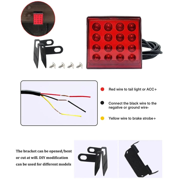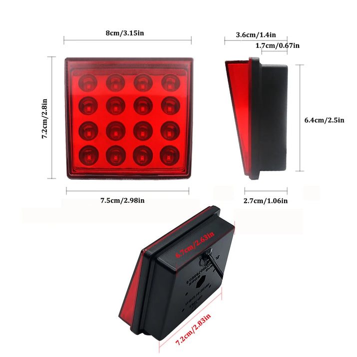 Luces antiniebla traseras LED de freno universales, luz de piloto trasera cuadrada, lámpara de parachoques trasero