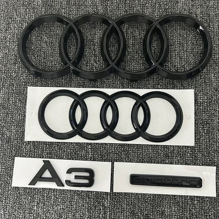 Logotipo de 4 anillos ABS negro capó de coche capó delantero parrilla maletero trasero emblema
